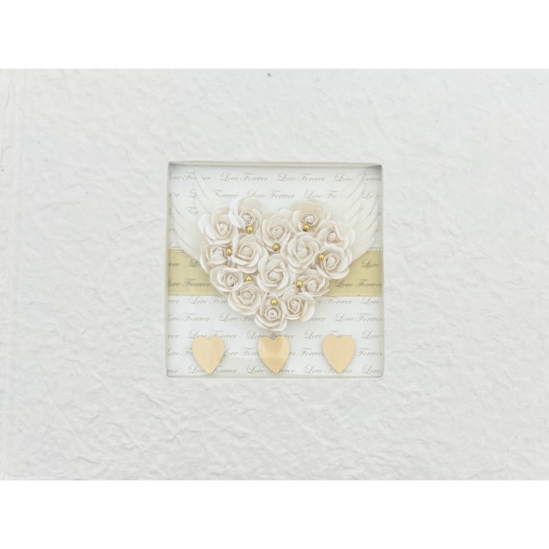 Centralnym elementem okładki jest dekoracyjna aplikacja z motywem serca ułożonego z jasnych, kremowych róż, ozdobiona subtelnymi złotymi akcentami oraz delikatnymi skrzydłami. Tło z romantycznym napisem „Love Forever” nadaje całości ciepłego, sentymentalnego charakteru. Dolną część kompozycji uzupełniają trzy złote serduszka, harmonijnie współgrające z naturalnym stylem albumu.