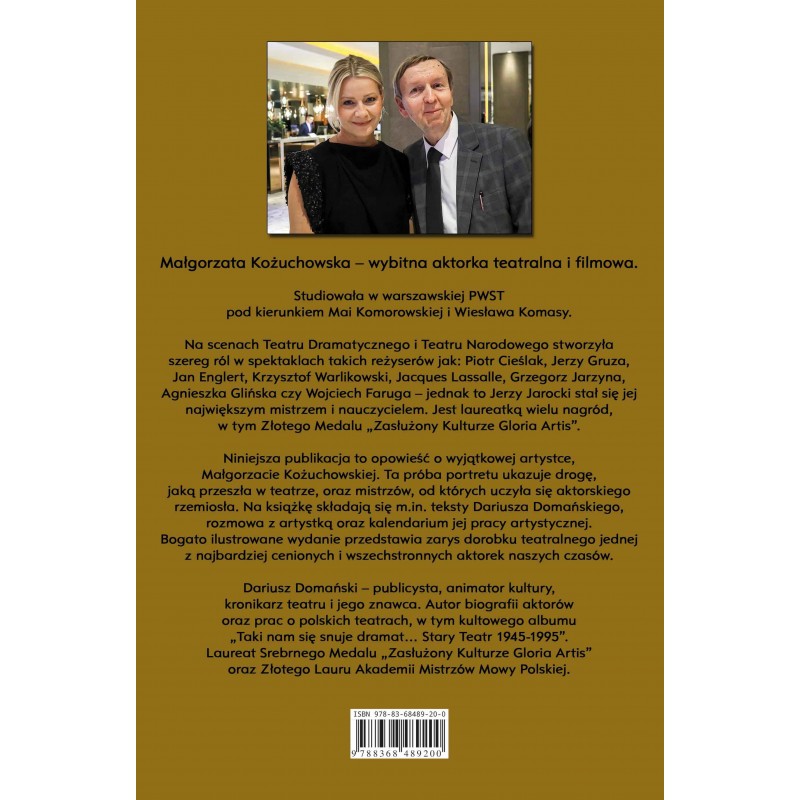 Choć szeroka publiczność zna ją głównie z ról filmowych i telewizyjnych, książka ukazuje ją w perspektywie teatru - przestrzeni, w której najpełniej realizuje się jej artystyczna tożsamość. To właśnie scena staje się osią tej opowieści - miejscem skupienia, refleksji i poszukiwania prawdy o człowieku.