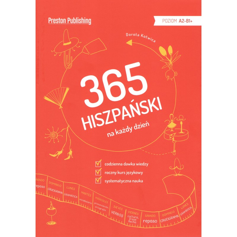 Nasz podręcznik to przemyślany roczny kurs języka hiszpańskiego na poziomie ponadpodstawowym i średnio zaawansowanym. Każdego dnia, krok po kroku opanujesz najważniejsze zagadnienia z zakresu gramatyki, słownictwa, pisowni czy słowotwórstwa.