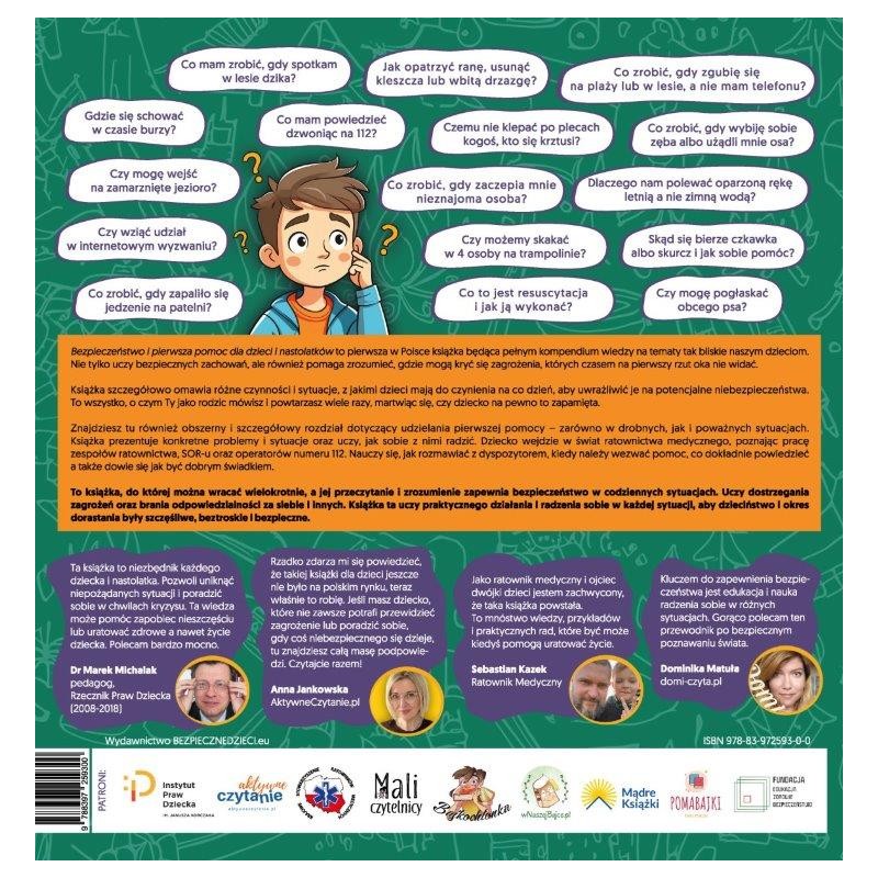 Bezpieczeństwo i pierwsza pomoc dla dzieci i nastolatków to pierwsza w Polsce kompleksowa książka, która w przystępny sposób uczy dzieci i młodzież, jak zadbać o swoje bezpieczeństwo oraz skutecznie reagować w sytuacjach zagrożenia. To niezbędny przewodnik dla każdego rodzica, który chce, by jego dziecko było przygotowane na różne wyzwania codziennego życia.