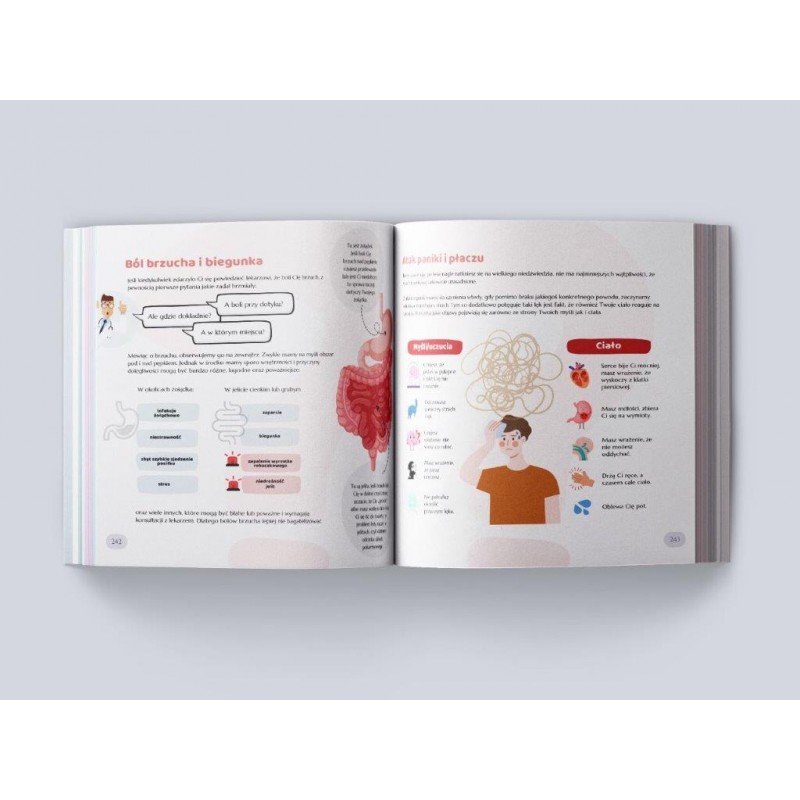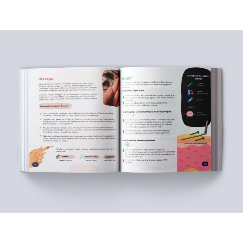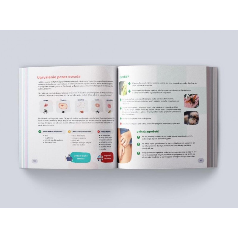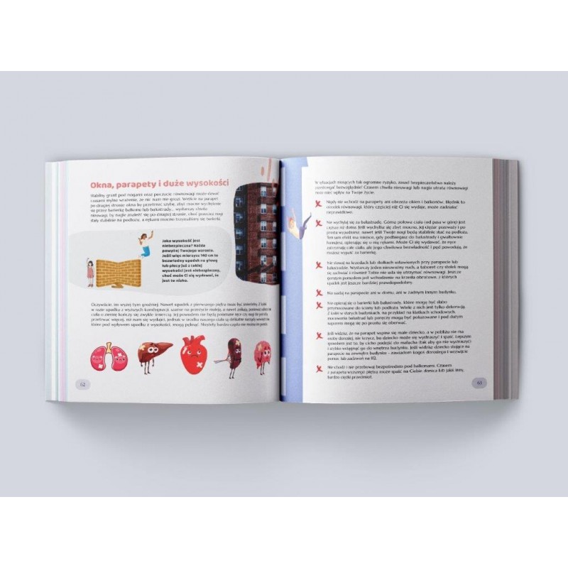 Książka zachęca do wielokrotnego wracania do zawartych w niej treści, co czyni ją trwałym źródłem wiedzy i bezpieczeństwa. Zawiera obszerny rozdział na temat pierwszej pomocy – od drobnych urazów po poważne wypadki. Twoje dziecko nauczy się, jak działać w kryzysowych momentach, co robić, aby pomóc innym, a także jak szybko i skutecznie wezwać pomoc, kontaktując się z numerem 112. Co więcej, pozna tajniki pracy służb ratowniczych i będzie przygotowane do odpowiedzialnego zachowania w sytuacjach awaryjnych.