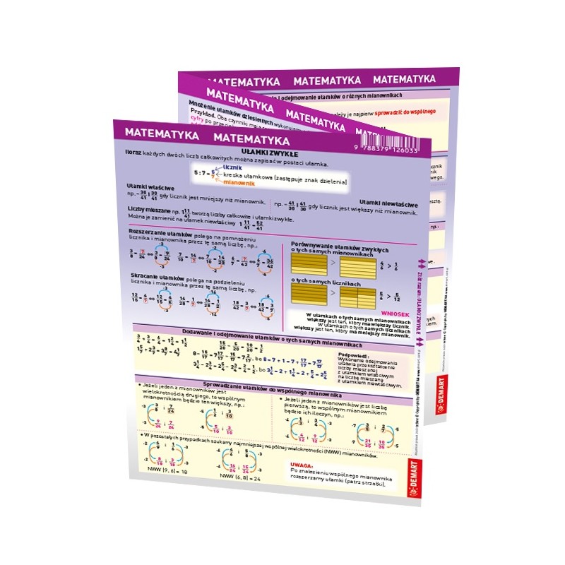 Zestaw ściągawek do matematyki w formie składanej harmonijki.