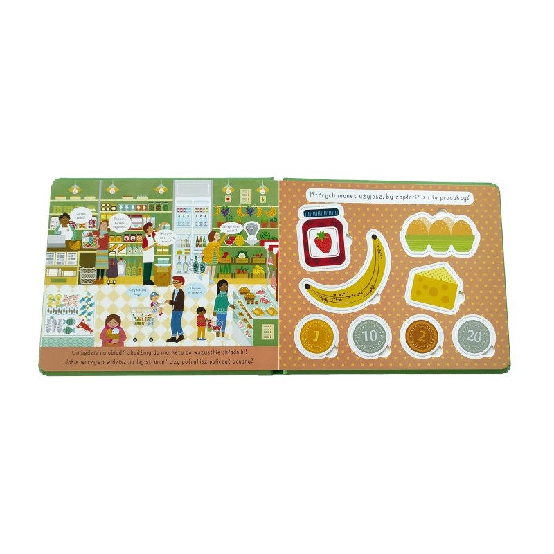 • zapoznaje z produktami, pieniędzmi i zasadą robienia zakupów