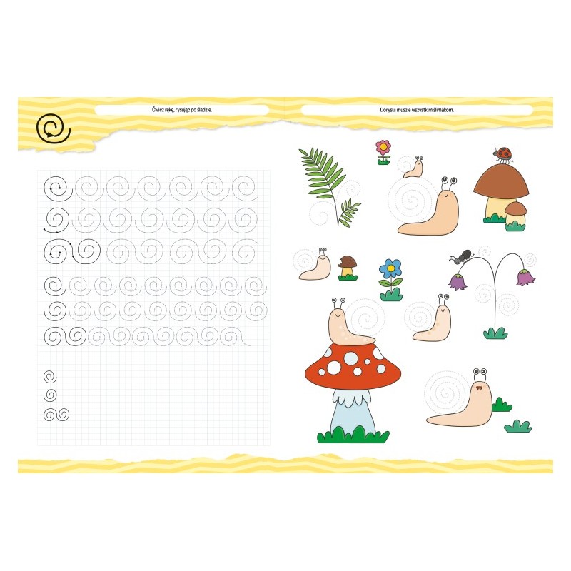 Książeczka edukacyjna przeznaczona dla dzieci przygotowujących się do nauki pisania. Przyjazne ilustracje i różnorodne szlaczki zachęcają do ćwiczeń grafomotorycznych w formie zabawy. Rysowanie szlaczków usprawnia rękę, rozwija koordynację wzrokowo-ruchową, uczy koncentracji i przygotowuje do późniejszej nauki pisania literek i cyferek.