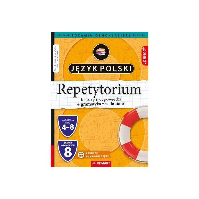 Repetytorium z języka polskiego służy przygotowaniu ósmoklasisty do obowiązkowego egzaminu na zakończenie szkoły podstawowej . Część powtórzeniową podzielono na zagadnienia gramatyczne (Gramatyka 28 tematów) i pozostałą nazwaną Lektury, choć obejmującą znacznie szerszy zakres tematyczny: omówienie lektur obowiązkowych począwszy od klasy IV do VIII , informacje o twórcach, formy wypowiedzi (67 tematów). Na rynku brakuje omówień obowiązkowych lektur w klasach młodszych, a one też są potrzebne do testów egzaminacyjnych. Na końcu znajdują się arkusze egzaminacyjne z ostatnich lat 2024 i 2025 - czyste do wypełnienia przez ucznia oraz uzupełnione. Te z odpowiedziami zawierają: punktację, komentarze i informacje, jak nie stracić punktów, a przy wypracowaniach ocenionych na maksymalną notę (zawsze są teksty do obydwu tematów), jest bardzo szczegółowe oznaczenie ich konstrukcji, argumentacji, użytych przykładów pochodzących z lektur i innych elementów przydatnych zdającemu egzamin uczniowi.