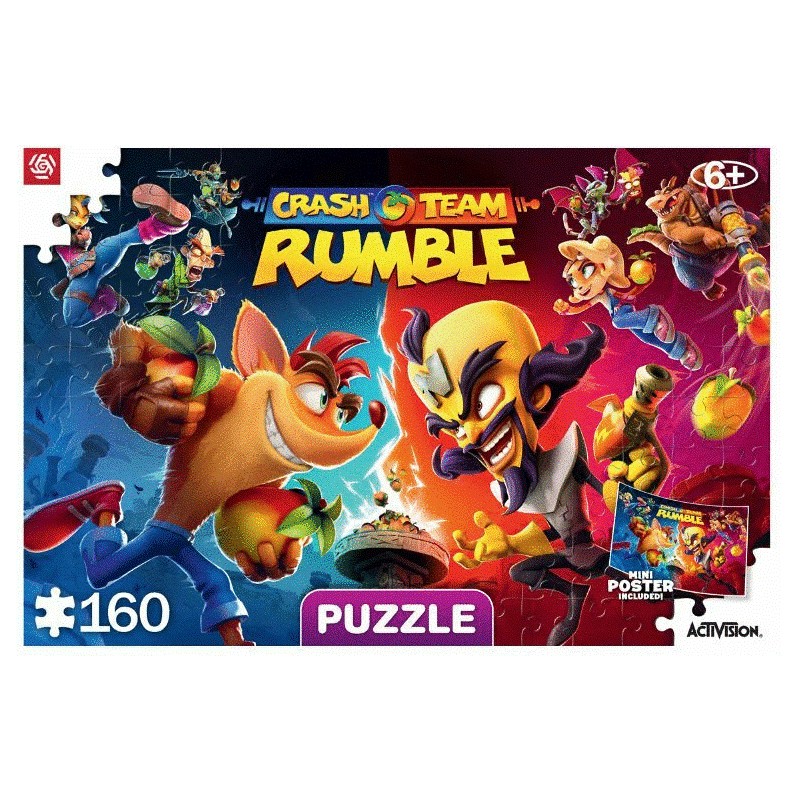 Crash i jego ferajna dołączają do dotychczasowych złoczyńców, żeby wziąć udział w sportowym wydarzeniu!? Świat stanął na głowie! Nowe przygody sympatycznego Jamraja rozpocznij od ułożenia mających 160 owoców wumpa… mieliśmy oczywiście na myśli 160 elementów, puzzli.