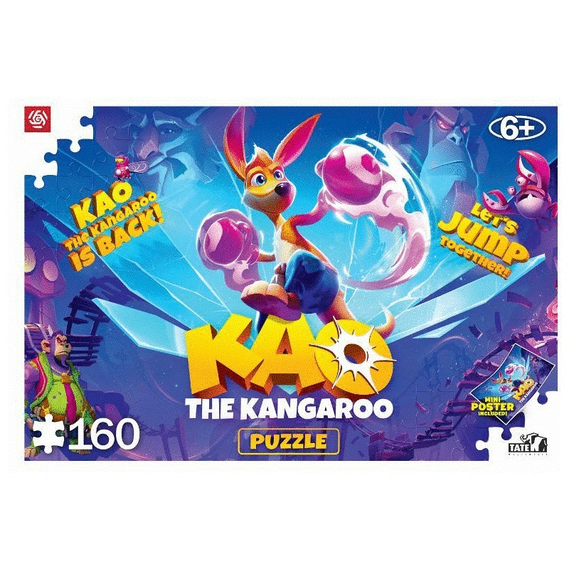 Dołącz do Kangurka Kao i wyrusz w cudowną podróż – ułóż wyjątkowo barwne i piękne puzzle składające się ze 160 elementów. Po ułożeniu powstanie obrazek o wymiarach 41 x 27,5 cm przedstawiający bohaterów najnowszej gry Kangurek Kao. To wyraz miłości do złotej ery trójwymiarowych platformówek i do klasycznych puzzli. Gra pełna dynamicznej akcji, emocjonujących walk teraz również w formie wysokiej jakości puzzli! Dodatkowo w pudełku znajdziesz mini plakat o wymiarach 26 x 17,5 cm.
