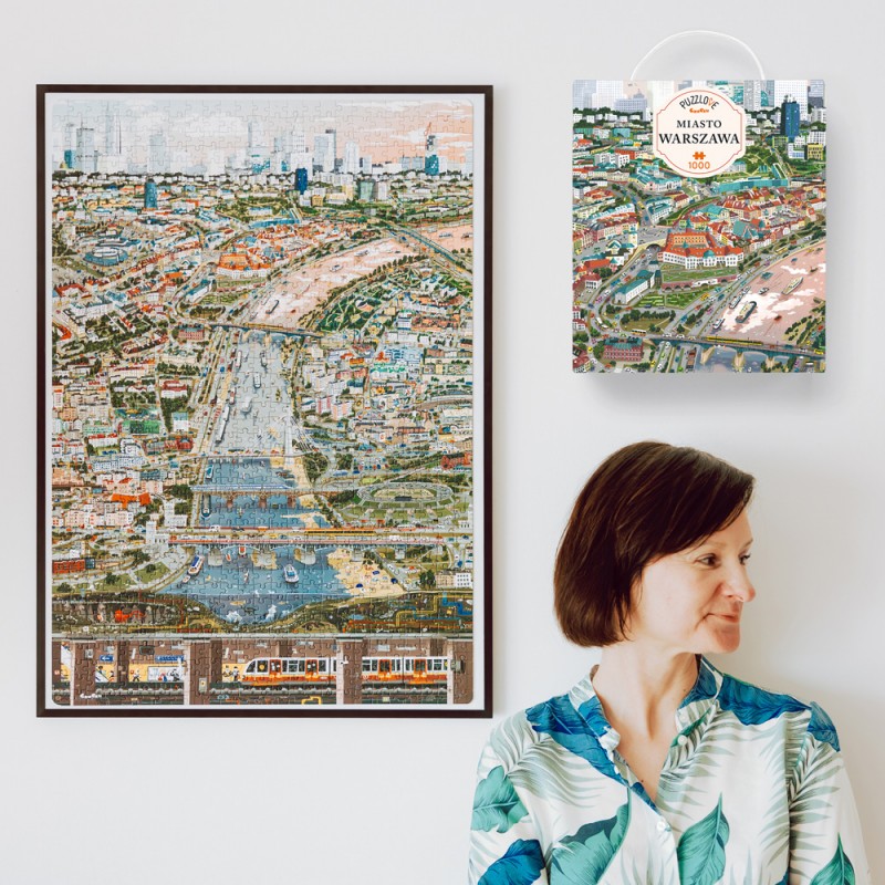 Najpierw jednak trzeba się trochę napracować – to pierwsze 1000-elementowe w historii CzuCzu! Czy można zmieścić całe miasto na jednej ilustracji? Na pewno dużą część! Podjęliśmy wyzwanie, puściliśmy wodze fantazji i nieco zakrzywiliśmy czasoprzestrzeń (czy widzicie, co się zmieniło?). W efekcie powstała piękna i pełna rzeczywistych, historycznych i baśniowych szczegółów ilustracja. Zobacz, jak wspaniała i ciekawa jest nasza stolica i wybierz się na wycieczkę przy najbliższej okazji. Puzzlove Miasto Warszawa to fantastyczne puzzle rodzinne, dla starszaków i dorosłych.