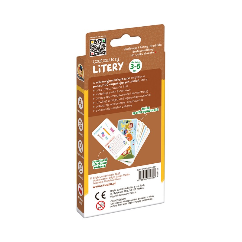 Poręczna edukacyjna książeczka dla przedszkolaków uczy liter i głosek na wesoło, co jest świetnym przygotowaniem do nauki czytania. Urocze, pełne humoru ilustracje inspirują do mnóstwa literowych i głoskowych zabaw. Różnorodne zadania rozwijają spostrzegawczość, logiczne myślenie i doskonalą słuch. Wspólna zabawa to świetny sposób na zdobywanie i utrwalanie nowej wiedzy.
