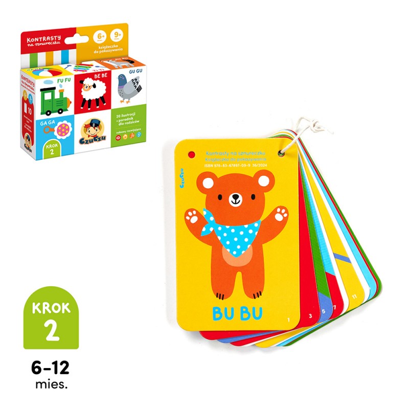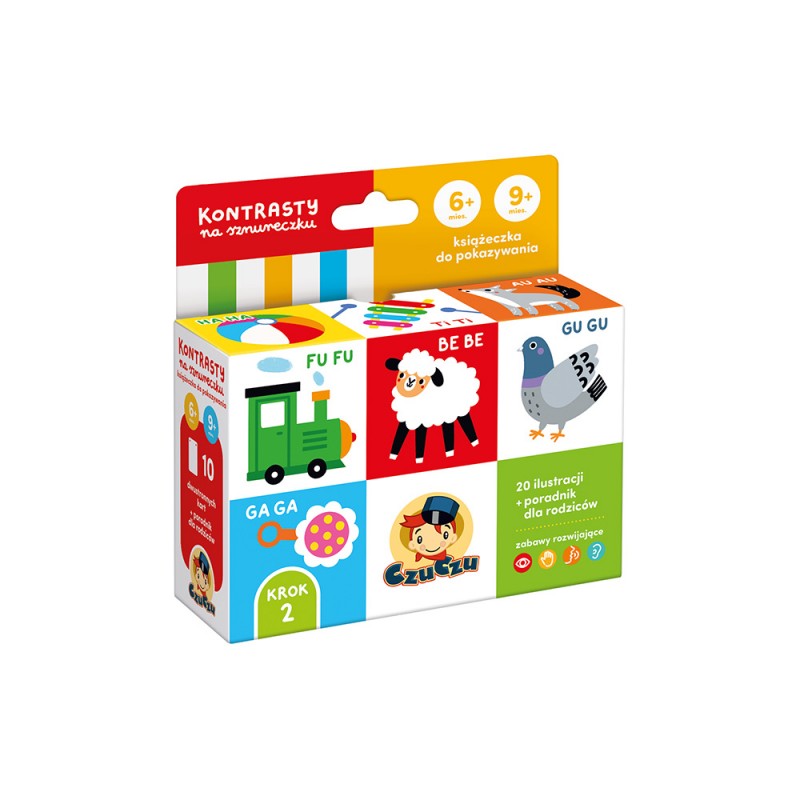 Ta poręczna książeczka na sznureczku ma 20 stron. Pełne humoru, kontrastowe kolorowe ilustracje przyciągają wzrok i uwagę dziecka i pozwalają na mnóstwo kreatywnych zabaw. Oglądajcie książeczkę razem. Wskazuj i nazywaj detale na obrazkach. Zachęć malucha do wydawania odgłosów. To doskonały sposób na pobudzanie wyobraźni i wspólne spędzanie czasu. Do zestawu dołączyliśmy poradnik z informacjami o rozwoju niemowląt i pomysłami na zabawy.