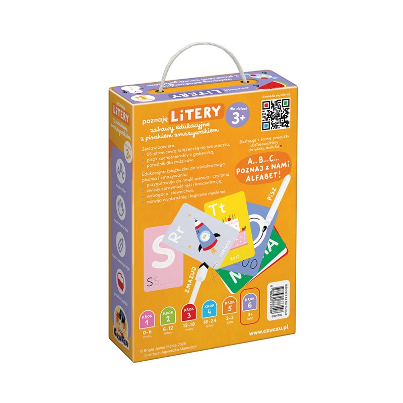 Edukacyjny zestaw zawiera książeczkę z fascynującymi ćwiczeniami grafomotorycznymi i magiczny pisak. Barwne i pełne zabawnych szczegółów ilustracje inspirują dzieci do rysowania i podejmowania pierwszych prób pisania. Specjalne karty pozwalają na wielokrotne rysowanie i zmazywanie. Do książeczki dołączyliśmy poradnik dla rodziców z informacjami o rozwoju grafomotorycznym dzieci i pomysłami na zabawy. Zestaw to doskonały pomysł na edukacyjny prezent dla przedszkolaka. Znakomicie sprawdza się w podróży z dzieckiem.