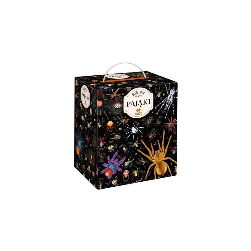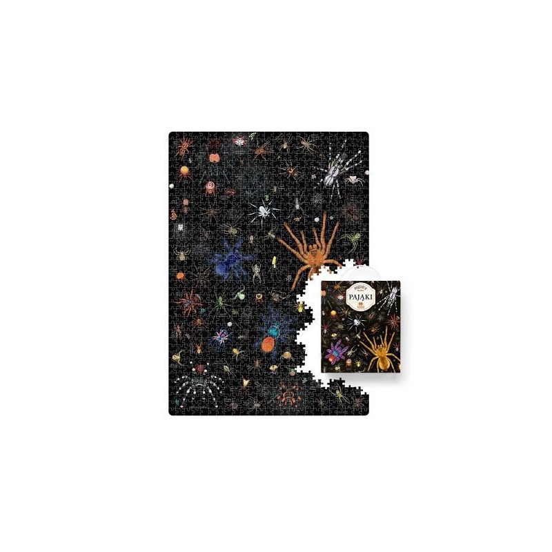 Kilkadziesiąt pająków z różnych zakątków świata (i piwnicy) tworzy dużą, klimatyczną ilustrację. Znasz je wszystkie? Niczym konstruktor pajęczej sieci, kawałek po kawałku ułóż 1000-elementowe puzzle, spędzając strasznie fajny czas w ulubionym towarzystwie.