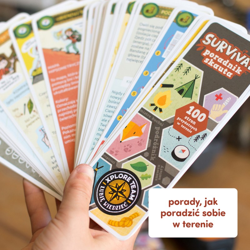 Xplore Team znaczy Drużyna Odkrywców – zaplanujcie bliższe i dalsze wycieczki. Dzięki praktycznemu poradnikowi będziecie doskonale przygotowani na każdą z nich. W poręcznej książeczce, która z łatwością zmieści się w plecaku, znajdziecie mnóstwo porad i informacji o tym, jak poradzić sobie w terenie. Jak zbudować szałas, ugotować coś z niczego i orientować się w przestrzeni? To tylko niektóre z nich!