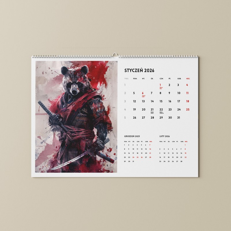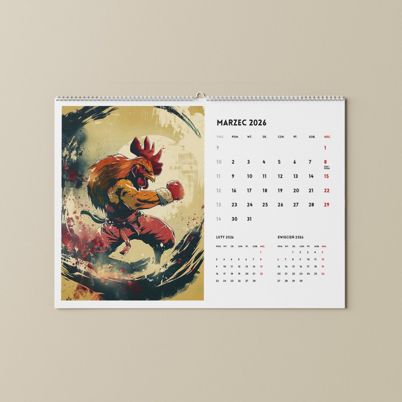 Wieloplanszowy kalendarz ścienny - zawiera 12 plansz z grafikami