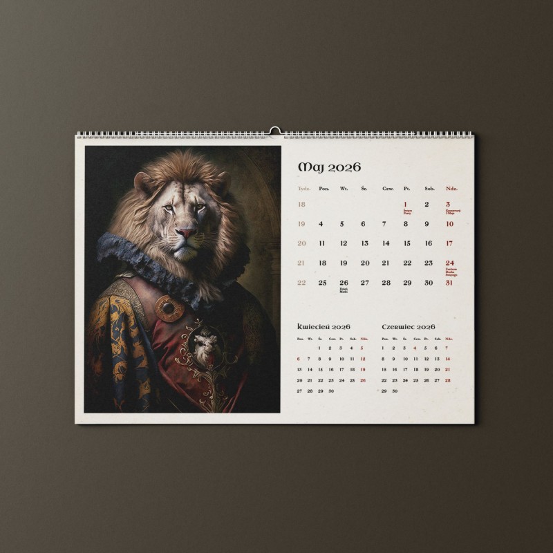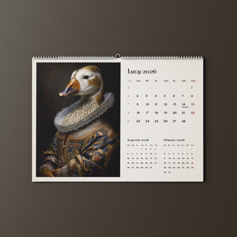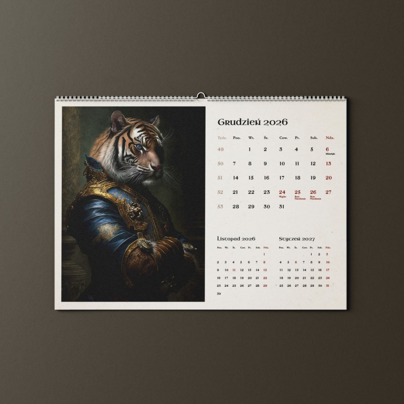 Wieloplanszowy kalendarz ścienny - zawiera 12 plansz z grafikami