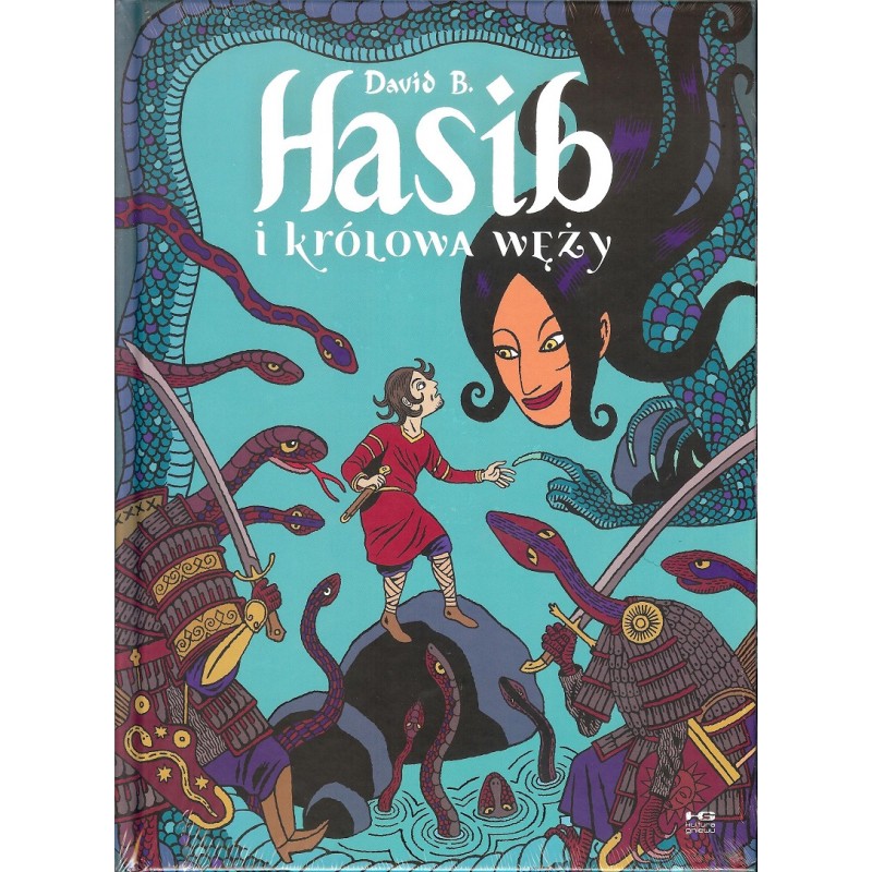 „Hasib i królowa węży” to epicka historia inspirowana przekazem z „Księgi tysiąca i jednej nocy”. Tytułowy Hasib jest młodym drwalem pozostawionym przez nieuczciwych towarzyszy na pewną śmieć w jaskini. Bohater spotyka tam jednak królową węży, która zaczyna snuć niezwykłą opowieść, pełną przygód, bóstw, demonów, księżniczek, czarnoksiężników i przepowiedni…