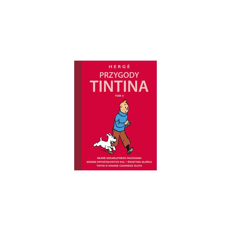 Tintin, młody reporter brukselskiej gazety i detektyw amator, zwiedza świat wraz ze swoim pieskiem Milusiem. W trakcie podróży spotykają wiele intrygujących postaci i rozwiązują liczne zagadki. Te pełne emocji oraz humoru historie pozwolą czytelnikom przeżyć niezapomniane przygody. Oto czwarty tom kolekcji składającej się z sześciu zbiorczych wydań w twardych oprawach. Zawiera on albumy: „Skarb Szkarłatnego Rackhama” (1945 r.), „Siedem kryształowych kul” (1948 r.), „Świątynia Słońca” (1949 r.), „Tintin w krainie czarnego złota” (1951 r.). Ahoj, przygodo! W pierwszej historii z tomu Tintin wyprawia się wraz z kapitanem Baryłką na poszukiwanie wraku okrętu „Jednorożec” i pirackiego skarbu. W podróży towarzyszy im nowy znajomy: nieco ekscentryczny profesor Lakmus. Czy jego wynalazek, miniaturowa łódź podwodna, okaże się pomocny w badaniu morskich głębin? I czy poszukiwaczom uda się odnaleźć drogocenne klejnoty Szkarłatnego Rackhama? Kolejne dwa albumy, „Siedem kryształowych kul” i „Świątynia Słońca”, tworzą jedną długą opowieść. Do Europy powraca ekspedycja archeologiczna, która odkryła w Peru grobowiec Inki Rascara Capaca. Wkrótce jej członkowie zaczynają po kolei zapadać w tajemniczą śpiączkę, a jedyną wskazówką są znalezione przy każdym z nich odłamki kryształu. Tintin rozpoczyna śledztwo, ale sprawy komplikują się jeszcze bardziej, gdy jeden z jego przyjaciół zostaje porwany. Aby go uratować i wyjaśnić zagadkę, reporter przemierzy wysokie i mroźne góry oraz parne lasy deszczowe. Może się jednak okazać, że w owianej legendą Świątyni Słońca zamiast odpowiedzi czeka na niego śmiertelne niebezpieczeństwo… Album zamyka historia „Tintin w krainie czarnego złota”. Kiedy wszędzie wokół niespodziewanie zaczynają wybuchać silniki rozmaitych pojazdów, Tintin domyśla się, że ktoś musi sabotować krajowe dostawy benzyny. Nasz bohater wyrusza tropem niebezpiecznego paliwa do bogatego w złoża ropy arabskiego państwa Khemed. Ku swojemu zdziwieniu w tym odległym i egzotycznym kraju spotka wielu starych znajomych – i nie wszystkie z tych spotkań będą przyjemne! Seria „Przygody Tintina” weszła już na stałe do kanonu klasyki światowego komiksu. Autorem cyklu jest belgijski artysta Georges Remi ukrywający się pod pseudonimem Hergé. Komiksy zaczęły się ukazywać w 1929 roku i od początku cieszą się uznaniem czytelników, o czym świadczy fakt, że wydrukowano ponad dwieście milionów egzemplarzy w ponad dziewięćdziesięciu językach, a Steven Spielberg wyprodukował na ich podstawie film. Hergé zaliczany jest do najpopularniejszych twórców XX wieku, a „Przygody Tintina” uznawane są za fundamentalne dzieło dla rozwoju komiksu, gdyż autor wprowadził technikę rysowniczą zwaną ligne claire, czyli „czystą linią”, którą naśladowali później liczni twórcy komiksu, zwłaszcza franko-belgijskiego.