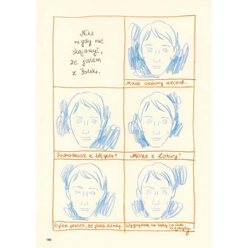 Debiut rysowniczki Grety Samuel, która w formule rysowanej relacji przedstawia kilka prawdziwych historii opowiedzianych jej przez migrantów mieszkających w Polsce. Punktem wyjścia dla autorki było jej własne doświadczenie migracyjne w Wielkiej Brytanii.
