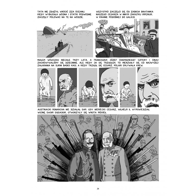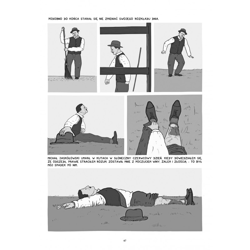 To nie jest opowieść o bohaterskich czynach. Nikt nie przypina w niej orderów za chwałę na polu bitwy. Trzymasz w ręku historię zwykłego szarego człowieka, który wielkich wydarzeń unikał, czasem dosłownie, jak ognia. Urodził się w małej galicyjskiej wsi niedługo przed pierwszą wojną światową i przeżył siedemdziesiąt lat, nigdy nie trafiając na karty historii – tak pisze Jakub Jaskółowski o swoim debiutanckim komiksie, komiksie brawurowym, odważnym, bezkompromisowym.