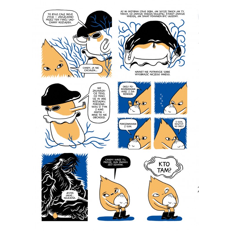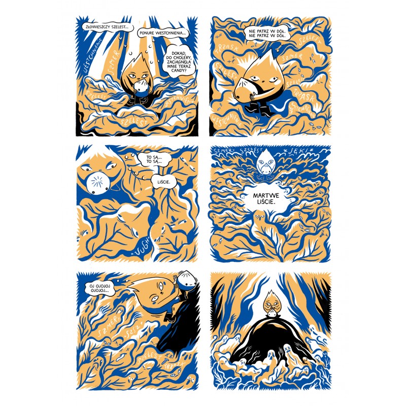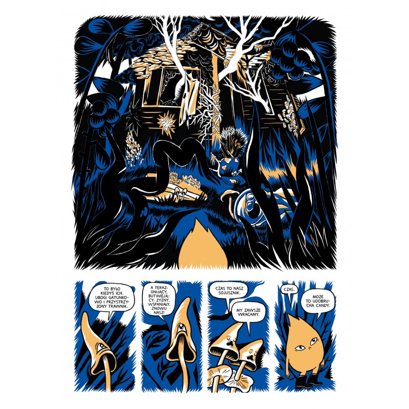 Nastała jesień, wszystkie liście wyruszają w swoją najważniejszą podróż, ale jeden z nich, Björk, gubi się tuż po odlocie. Tak mogłaby się skończyć jego wielka przygoda, ale tym razem to dopiero jej początek! Spotka bowiem na swojej drodze zrozpaczonego po zawodzie miłosnym podgrzybka Candy i mroczną, cuchnącą boginkę Gun, a trasę wyznaczy mu odpowiednio zsieciowana grzybnia. Odkryje, że po starym lesie zostało puste pole, zaraz obok wyrosła armia zwodniczych świerków, a grzyby oszalały na punkcie roztaczającej wizje lepszego życia Kombuczy, kapłanki wellness.