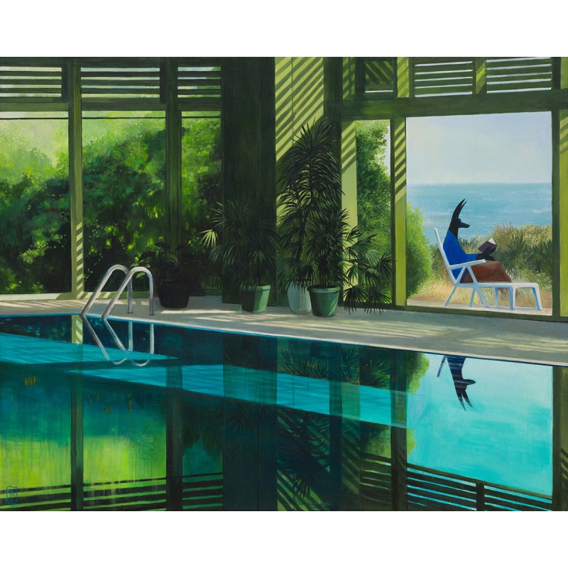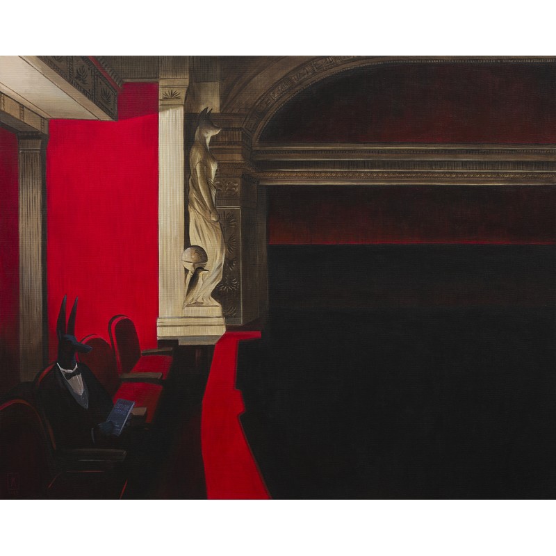 Joanna Karpowicz rozpoczęła swój malarski cykl z Anubisem w roku 2011. Egipskie bóstwo o głowie szakala, psychopomp o rodowodzie starożytnym pojawia się na płótnach Karpowicz w kontekstach współczesnych. Postać Anubisa nie jest personifikacją śmierci. Jest przewodnikiem dusz, „akuszerem odchodzących”, w ujęciu Jungowskim: „End of Life Doula”. Jest tym, który towarzyszy nam w przejściu między jednym światem a drugim. Spotykamy go na końcu swojej drogi, ale dostrzec możemy w ciągu całego życia - w miejscach gdzie granica, pomiędzy dwoma światami jest szczególnie cienka - w “Thin Places”.
