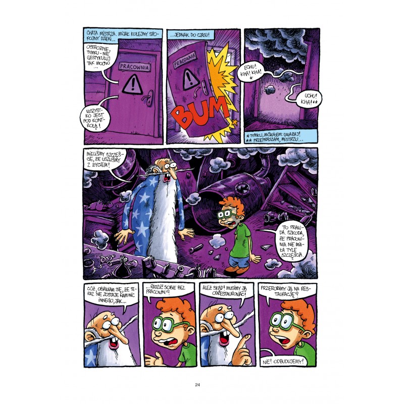 Nowe wynalazki, skomplikowane maszyny i zaklęcia to dla Tymka i Mistrza nic trudnego. Potrafią też uratować niedźwiedzia od koszmarów, a króla od zmartwień. Co jednak, gdy Mistrzowi skończy się licencja na czarowanie i stanie się nielegalnym czarodziejem?