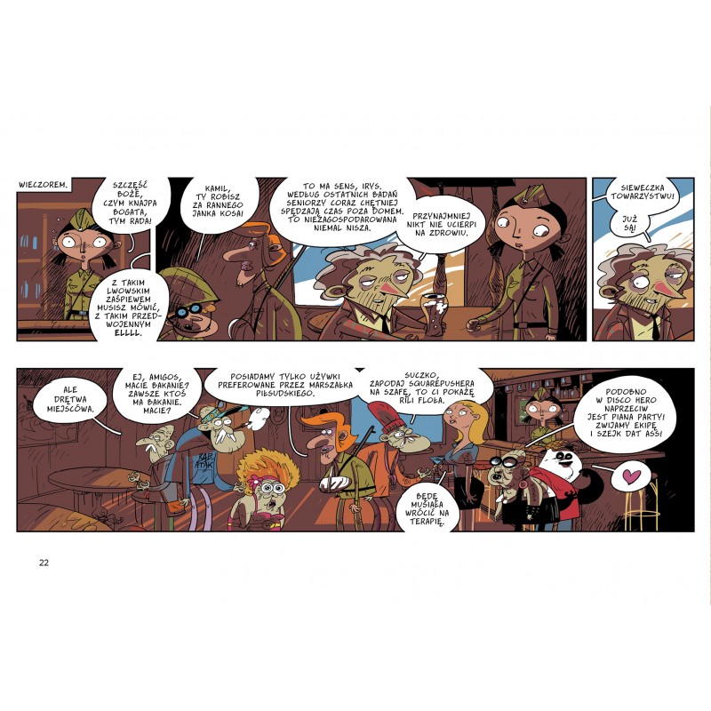 „Na Jedno Pub” to cykl opowieści rozpoczęty przez Karola Kalinowskiego i Michała Śledzińskiego w 2010 roku. Wtedy pojawiły się pierwsze paski z przygodami pubowej ekipy, ale historia została urwana przed finałem, który Śledziu z KRL-em stworzyli dopiero na potrzeby tego wydania. „Komiks swoje odleżał, więc żart momentami ma natury grubszej, ale szczerej, a to najważniejsze. Bywa, że trup się ściele, jednak nie jakoś gęsto” – opowiada Michał Śledziński.