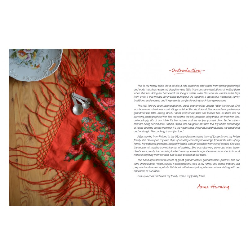 “Polish Your Kitchen: My Family Table” to zbiór przepisów przekazanych z pokolenia na pokolenie, zawierający ponad 100 klasycznych polskich dań z rodzinnego domu autorki i odzwierciedląjący tradycyjne smaki i style kulinarne ogniska domowego.