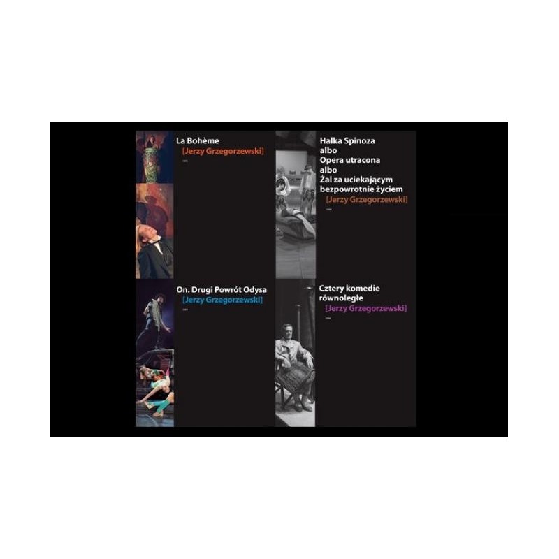 Improwizacje pod redakcją Ewy Bułhak i Mateusza Żurawskiego to już drugi tom edycji krytycznej scenariuszy Jerzego Grzegorzewskiego, wydawanej przez Instytut Teatralny im. Zbigniewa Raszewskiego przy współpracy Teatru Studio i Teatru Narodowego. Obejmuje cztery albumy, zawierające pięć tekstów z lat 1994‒2005: Sonatę epileptyczną i Jagogogo kocha Desdemonę ‒ Cztery komedie równoległe (1994), La Bohème (1995), Halkę Spinozę albo Operę utraconą (1998) oraz Onego. Drugi Powrót Odysa (2005) i zapis ich scenicznych realizacji. Każdy scenariusz, poprzedzony obszernym wstępem, opatrzony rozbudowanym aparatem krytycznym, który uwzględnia kolejne warianty tekstu, oraz odkrywa jego źródła i inspiracje, jest bogato zilustrowany m.in. fotografiami autorstwa Wojciecha Plewińskiego, Zygmunta Rytki, Tet Lagemaat i Barbary Sieroslawski, a także szkicami reżysera.