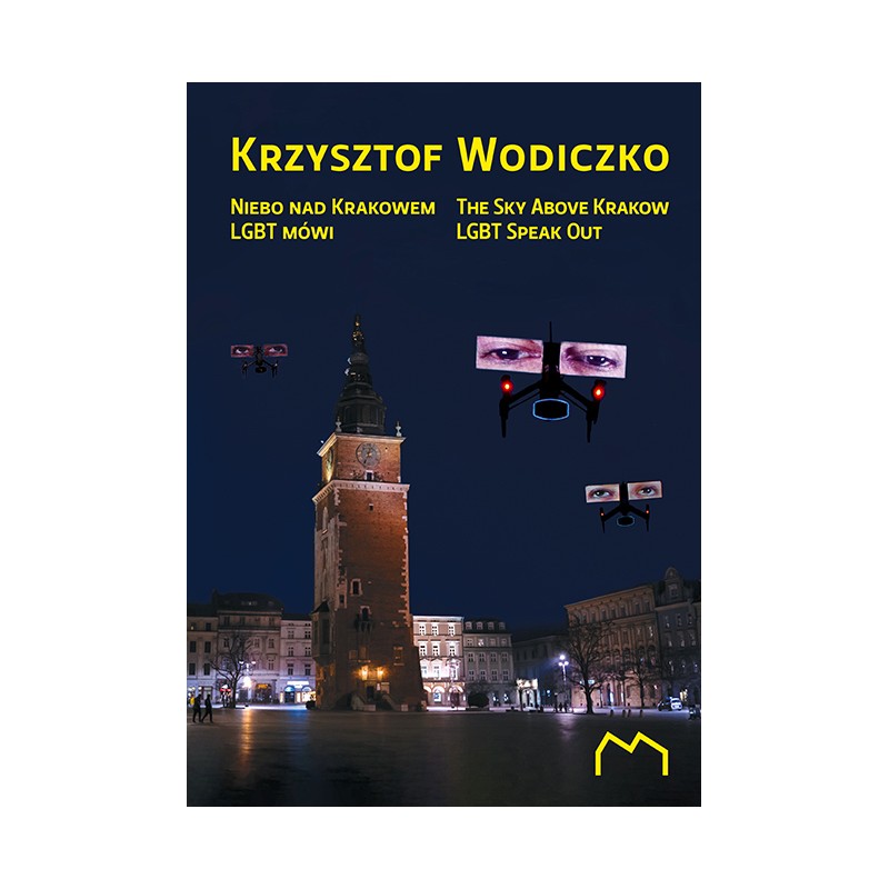 Polsko-angielska publikacja Niebo nad Krakowem. LGBT mówi towarzyszy dronowemu pokazowi Krzysztofa Wodiczko na Rynku Głównym w Krakowie.