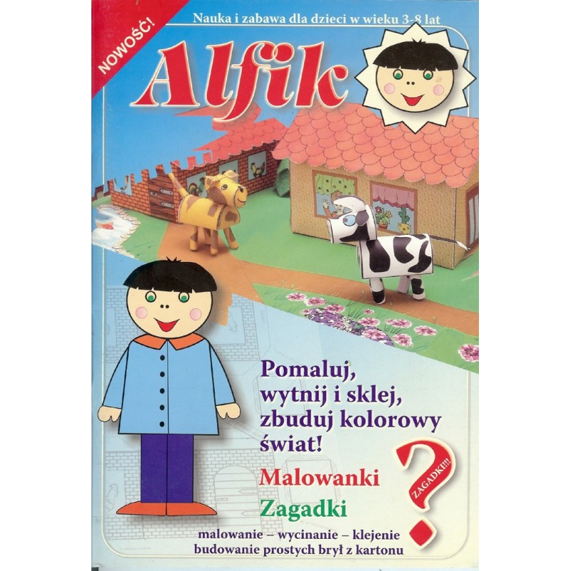 Afik - to zeszyt edukacyjny dla dzieci w wieku od 3 - 8 lat. 30 obrazków do pokolorowania, 16 plansz do wycięcia i sklejenia oraz 30 ciekawych zagadek dla dzieci.