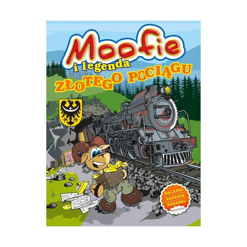 W naklejance „Moofie i legenda Złotego Pociągu” wesoły muflon – zapalony podróżnik i poszukiwacz przygód – przybliża młodemu czytelnikowi atrakcje turystyczne Dolnego Śląska. Książeczka ma charakter detektywistyczno-szpiegowski. Moofie podążając wraz z czytelnikiem śladami legendy Złotego Pociągu, wędruje od strony do strony, od miejsca do miejsca. Na każdej stronie wśród szyfrów, zadań z naklejkami, łamigłówek i rebusów ukryta jest wskazówka, której odnalezienie pozwala odsłonić następny fragment tajemniczej zagadki tego pociągu widmo i przenieść się na kolejną stronę. Na swojej drodze dociekliwy muflon spotyka sprzymierzeńców. Są nimi kret Rudi – specjalista od podziemi oraz Oksana Sówka – mieszkanka Gór Sowich. Niestety ich plany rozwikłania zagadki Złotego Pociągu próbują zniweczyć strażnicy tajemnic. Nagrodą za odnalezienie każdej wskazówki jest naklejka ze sztabką złota, którą trzeba przykleić w wyznaczonym miejscu. Wszystkich naklejek jest niemal 120! Większość to nierozłączne elementy zadań, lecz jest także kilka takich do wykorzystania według własnego uznania, np. postacie bohaterów, które dziecko może przykleić na piórnik czy zeszyt.