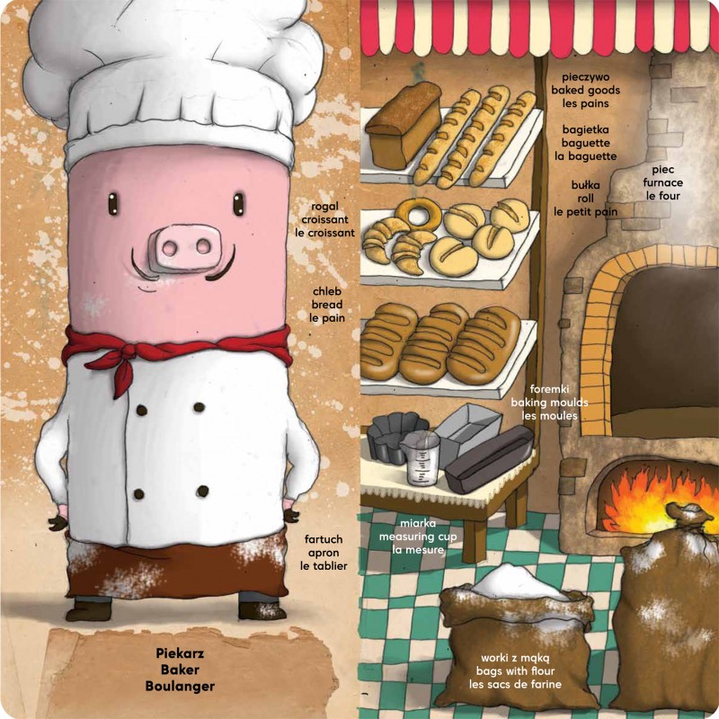 Pan Świnka jest pozytywnie zakręcony niczym jego ogonek. Ma wiele zainteresowań i wciąż odkrywa nowe pasje wcielając się w zaskakujące role. Podejmij wyzwanie i poznaj 14 profesji w trzech językach jednocześnie! Może razem z Panem Świnką znajdziesz swoje hobby lub spróbujesz czegoś zupełnie nowego?