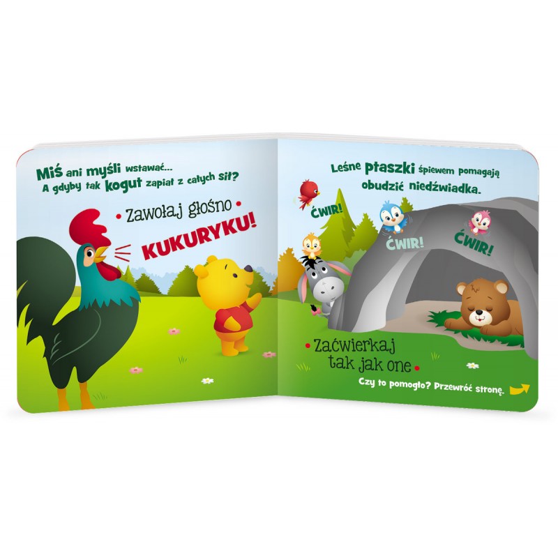 Przyszła wiosna, a niedźwiadek ciągle śpi. Jak go obudzić? Może zaśpiewasz mu piosenkę albo zagrasz na bębenku? Wstawaj, misiu!