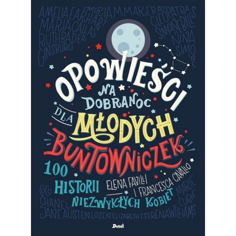 Opowieści na dobranoc dla młodych buntowniczek, historie stu bohaterskich kobiet od Elżbiety I po Serenę Williams, to nowe wersje bajek stworzone, by zainspirować wszystkie dziewczynki. Książka, zilustrowana przez sześćdziesiąt artystek ze wszystkich zakątków świata, to najhojniej finansowana oryginalna publikacja w dziejach crowdfundingu. Wsparli ją czytelnicy z ponad siedemdziesięciu pięciu krajów świata. Prawa do tytułu sprzedano do dwudziestu ośmiu krajów i liczba ta stale rośnie!