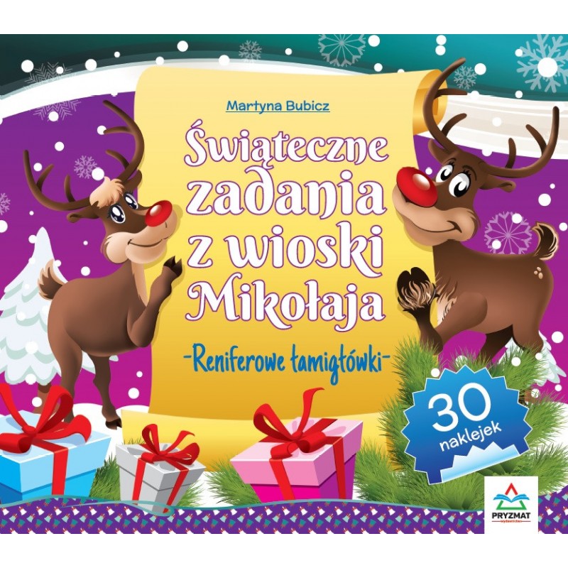 W serii książeczek "Świąteczne zadania z wioski Mikołaja" zamieszczone są różnorodne kolorowanki, łamigłówki, zagadki, plataninki, labirynty oraz 30 naklejek, które uatrakcyjniają wykonywanie działań przez małych czytelników. Bajecznie kolorowa szata graficzna wprowadza dziecko w magiczny świat Mikołaja i jego pomocników.