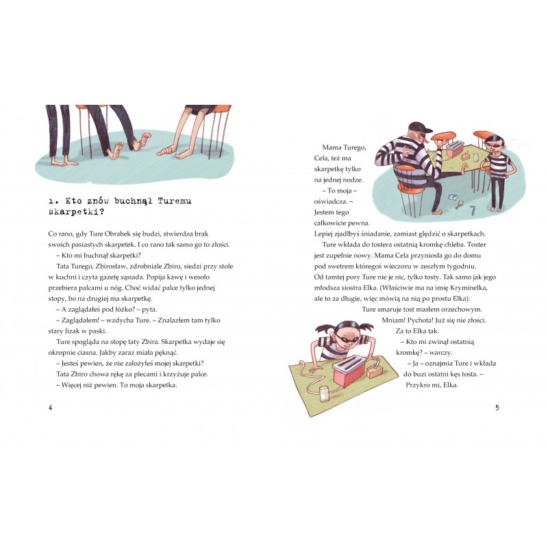 Członkowie Rodziny Obrabków bardzo lubią zabierać cudze rzeczy. Po prostu nie potrafią się powstrzymać. W każdym razie tata Zbiro, mama Cela i Elka. Za to Ture lubi robić tylko to, co dozwolone, i nie bierze niczego bez płacenia. Rodzice i siostra trochę się o niego martwią. Co z tego chłopaka wyrośnie?