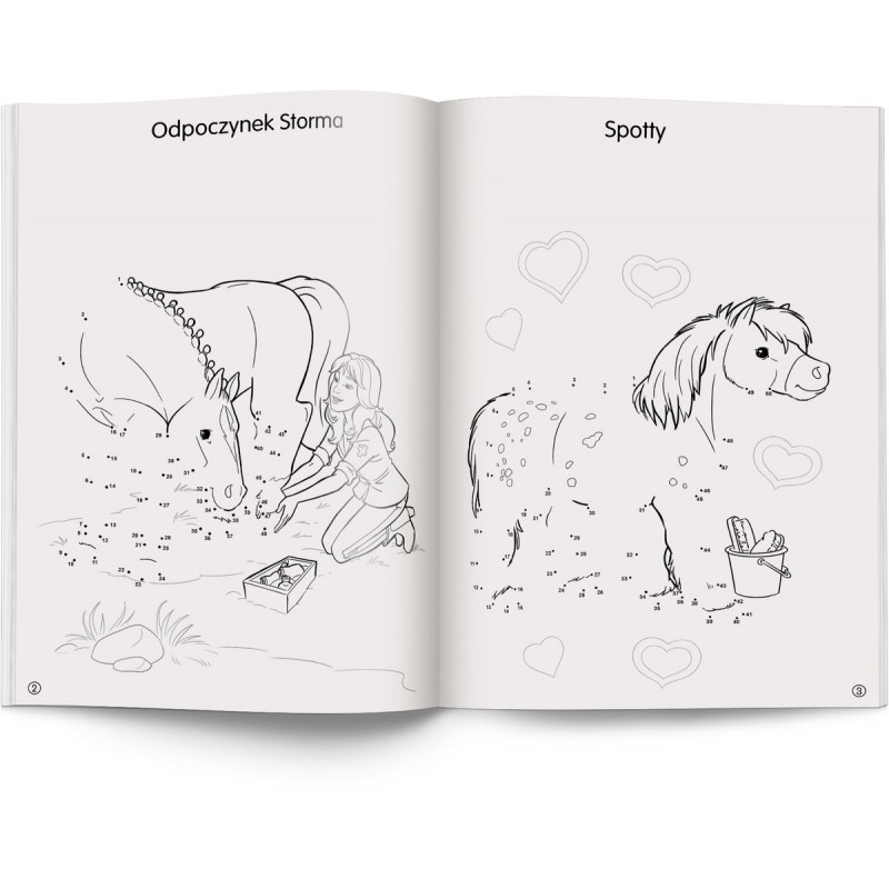 Czas na nową przygodę w "Horse Club"! Jesteś miłośniczką koni i lubisz rysować? Jeśli tak, to ta książka jest właśnie dla ciebie! "Połącz kropki" i stwórz pełne przygód ilustracje. Gotowe obrazki możesz też pokolorować i ozdobić naklejkami dołączonymi do książki. Uważaj, ta zabawa wciąga!