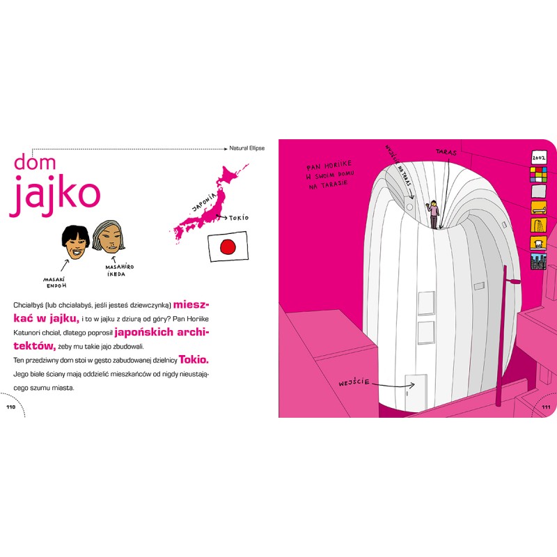 Pomysłowa i zabawna książka, z której młodzi czytelnicy dowiedzą się, jak bardzo różne mogą być ludzkie domy i jak fascynującą sztuką jest architektura.