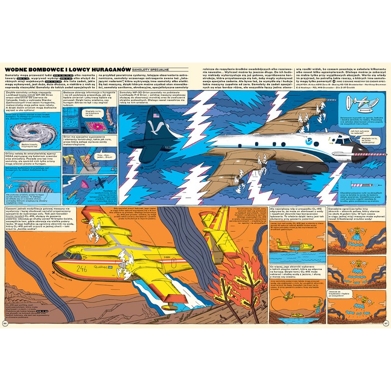 Ale to nie wszystko! W przystępnej i zabawnej formie poznacie odpowiedzi na najważniejsze pytania: jak to się dzieje, że samolot nie spada? Jak działa radar albo spadochron? Czy lepsze są skrzydła czy wirnik? Czy da się latać bez napędu? Ważne pojęcia takie jak przeciążenie czy bariera dźwięku nie będą miały przed wami tajemnic.
