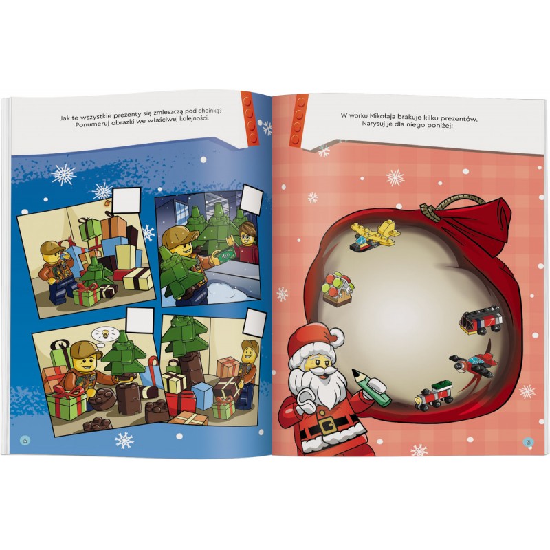 Książka z zadaniami i minifigurką Świętego Mikołaja
