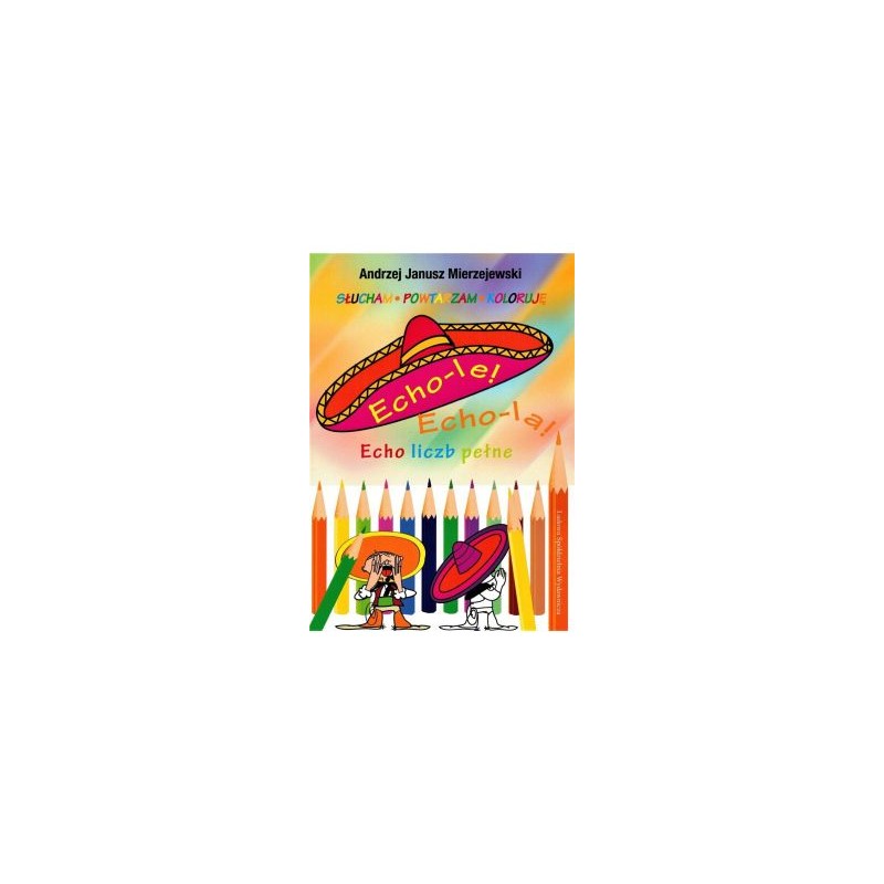 Echo-le! Echo-la! Echo liczb pełne to szósta z kolei książeczka-kolorowanka z autorskiej serii SŁUCHAM POWTARZAM KOLORUJĘ przeznaczonej dla dzieci w wieku przedszkolnym. Celem cyklu jest towarzyszenie najmłodszemu odbiorcy w nawiązywaniu bliższego, bardziej dynamicznego kontaktu z utworem poetyckim nie tylko w jego warstwie głosowej, werbalno-znaczeniowej, lecz również plastycznej, wzrokowo-emocjonalnej.