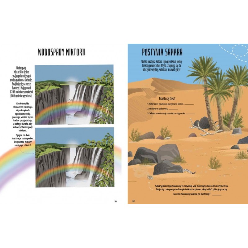 "Świat dzikich zwierząt" to przewodnik w formie książki aktywnościowej, który pozwala czytelnikowi zgłębić fascynujący świat przyrody, jednocześnie bawiąc i edukując go poprzez interaktywne elementy i zagadki. Poznaj najciekawsze zwierzęta naszej planety i miejsca, w których żyją. Wyrusz z nami w podróż po dzikich rejonach świata i zobacz niektóre z najbardziej niezwykłych stworzeń. W każdym z miejsc będziesz rozwiązywać zagadki i odkrywać fascynujące fakty. Ta książka to droga przez świat przygód!