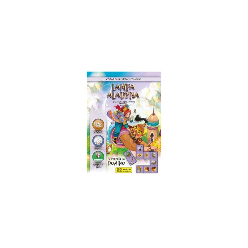 Oto książka, która rośnie razem z dzieckiem. Bawi i uczy malucha, przedszkolaka oraz kilkulatka stawiającego pierwsze kroki w czytaniu i pisaniu. Maluch na pewno chętnie sięgnie po naklejki i uzupełni nimi piękne ilustracje, a także posłucha baśni czytanej przez kogoś dorosłego. Nieco starsze dziecko poćwiczy spostrzegawczość, wyszukując wśród nalepek podpisy do przedmiotów pokazanych u dołu każdej strony, a przy tym pozna kilka nowych słów. Kto chciałby potrenować pisanie, znajdzie odpowiednie ćwiczenia na końcu książki. W samodzielnym czytaniu baśni pomoże dziecku dyskretnie zaznaczony kolorem podział na sylaby. I oczywiście nie zapomnijmy o zabawie: i duzi, i mali zapewne z radością zagrają w samodzielnie wykonane domino, a także spróbują swych sił w kolorowaniu baśniowych ilustracji.