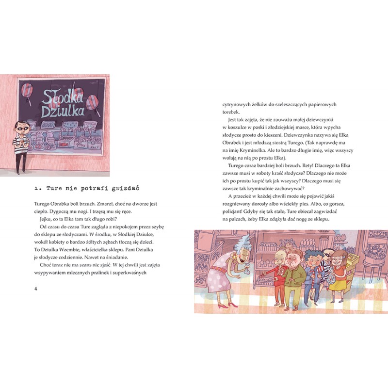 Członkowie rodziny Obrabków bardzo lubią zabierać cudze rzeczy. Po prostu nie potrafią się powstrzymać. W każdym razie tata Zbiro, mama Cela i Elka. Za to Ture lubi robić tylko to, co dozwolone, i nie bierze niczego bez płacenia. Rodzice i siostra trochę się o niego martwią. Co z tego chłopaka wyrośnie?
