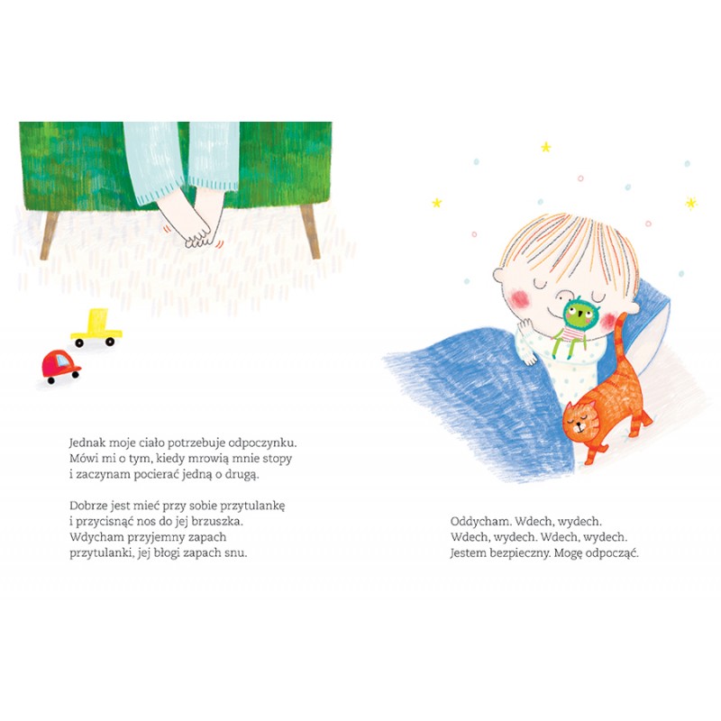Ćwiczenia są proste i przyjemne, dzięki czemu dziecko szybko je zapamięta. Przyswojone sekwencje ruchowe pomogą mu rozpoznać oznaki zmęczenia, odprężyć się, poczuć się bezpiecznie, zaprzyjaźnić się z nocą i przyjąć nadchodzący sen.