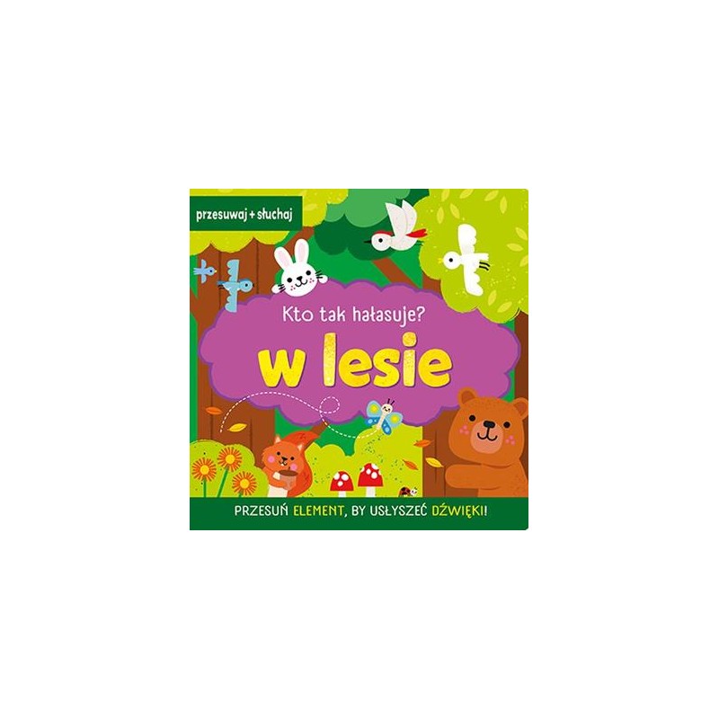 Książka zapoznaje dzieci ze zwierzętami mieszkającymi W LESIE. Mali czytelnicy znajdą w niej proste i krótkie TEKSTY. Wyróżnikiem publikacji są PRZESUWANE ELEMENTY DŹWIĘKOWE, dzięki którym dziecko może AKTYWNIE uczestniczyć w czytaniu. Kolorowe ILUSTRACJE pomogą poznawać zwierzęta