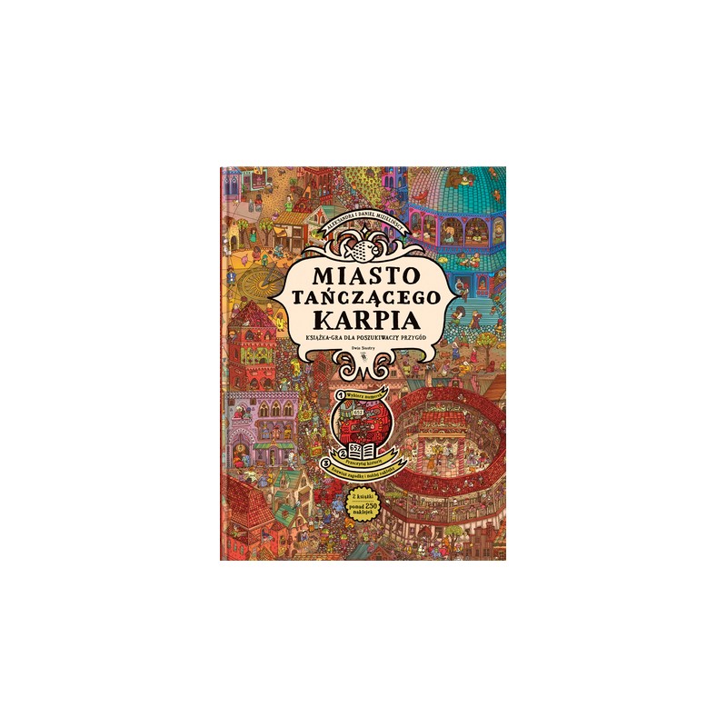 W Mieście Tańczącego Karpia przygody i zagadki czekają na każdym kroku. Czy uda ci się wytropić wszystkie? Oto książka-gra, jakiej jeszcze nie było: wyszukiwanka i gra paragrafowa w jednym. A właściwie: 2 książki, ponad 250 naklejek i niezliczone godziny zabawy.