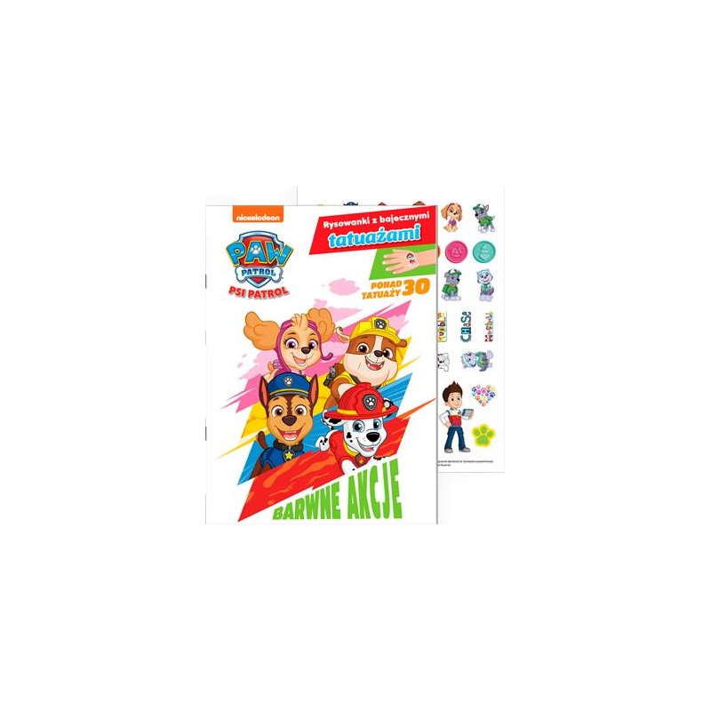 Rysowanki z bajecznymi tatuażami to fantastyczna książka z ulubionymi bohaterami, w której dziecko znajdzie wiele kolorowanek i zadań do wykonania. Do publikacji dołączone są, uwielbiane przez maluchy, zmywalne tatuaże, które wywołają uśmiech na twarzy każdego fana dzielnych piesków z Psiego Patrolu!