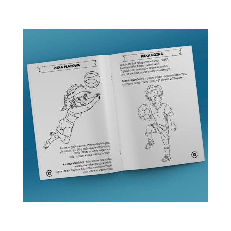 Kolorowanka ma zachęcić do czynnego uprawiania sportu. Nie chodzi więc jedynie o kolorowanie sportowców i poznawanie różnych dyscyplin sportowych. Postanowiliśmy połączyć przyjemność kolorowania z fascynacją sportem, aby dzięki aktywności sportowej dzieci zwiększyć ich umiejętność koncentracji oraz budowania wytrwałości.